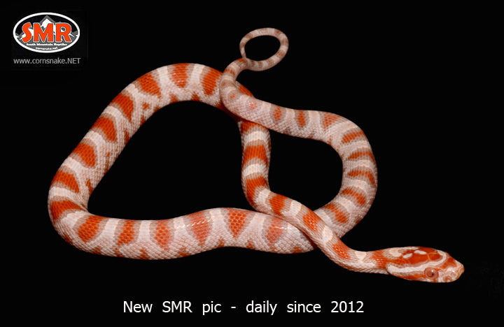 This 12" 2020 female High-white Reverse Okeetee shows color promise to be a spectacularly red and white adult. She is currently eating frozen/thawed day-old pinky mice. $221.00 plus $39.00 overnight domestic shipping to any of the lower-48 U.S. zip codes.