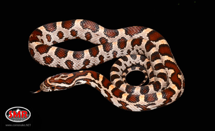 This 14" male Extreme Okeetee is currently eating frozen/thawed day-old pinky mice. Sire of this is an Extreme REVERSE (amel) Okeetee, so, this one will have deep colors and very wide black blotch margins. $131.00 plus $39.00 flat-rate overnight domestic shipping to any of the lower-48 U.S. zip codes.