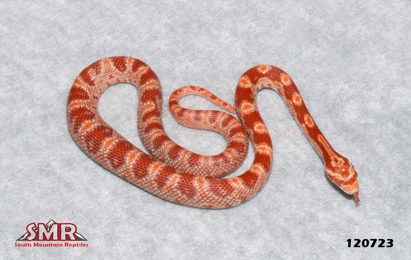 This 14" 2023 female Amel is currently eating frozen/thawed 1-day-old pinky mice. She is het for Diffused, Red Factor, Masque and Pied-sided mutations. $39.00 flat-rate overnight FedEx shipping applies to orders delivered to ALL U.S. zip codes.