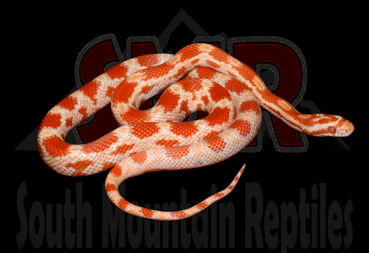 This 2021 female Amel cornsnake is 20" long, eating medium frozen/thawed pinky mice. One of her parents is a Visual-het Red Factor mutant. $161.00 plus $39.00 domestic overnight shipping to any U.S. zip codes between Canada and Mexico.