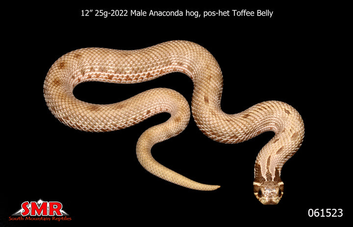 This 2022 12" male Anaconda Western Hognose is currently eating unscented frozen/thawed pinky mice. He is possibly het for Toffee Belly.