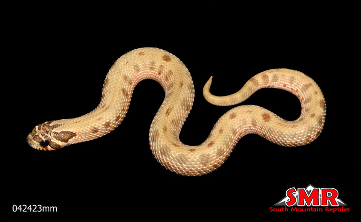 This 2022 8" male Anaconda Western Hognose is currently eating unscented frozen/thawed pinky mice. He is possibly het for Toffee Belly.