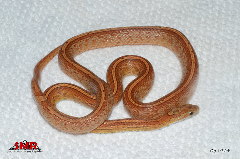 This 30" male 2023 Bloodred Tessera is het for Pied-sided (P/S) and Terrazzo mutations, and possibly het for Charcoal. He is currently eating frozen/thawed fuzzy mice. $39.00 flat-rate overnight shipping to any U.S. zip code between Mexico and Canada.