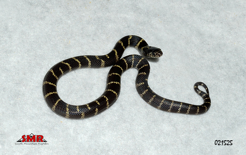 This 2024 12" female pin-banded California Kingsnake is eating frozen/thawed day-old pinky mice. Flat-rate $39.00 overnight shipping.