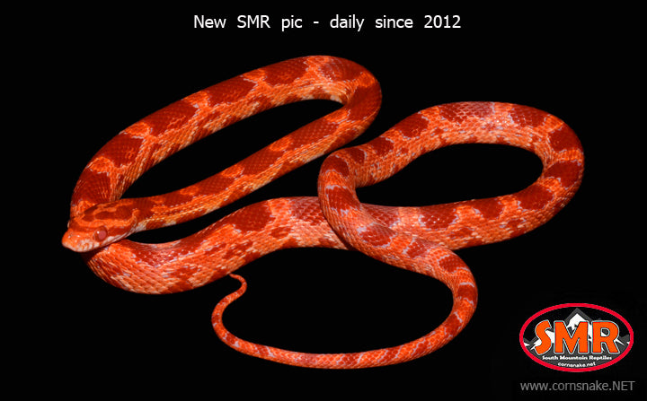 This 20" male 2019 Cherry Amel represents the newest Red-modifying gene mutation in cornsnakes, Cherry. Cherry, like all red-modifying mutations in corns--deepens the saturation of red throughout maturity, so the heavily red/orange seen here will be two shades in the coming months/years. I've had all of the red-modifiers, but this one tops them all. $461.00 plus $39.00 flat-rate overnight domestic shipping to all of the lower-48 U.S. zip codes.
