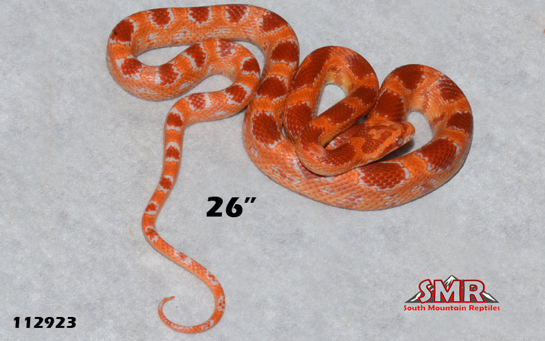 FREE SHIPPING - This 26" female 2022 CHERRY Amel Cornsnake represents the newest Red-modifying gene mutation in cornsnakes, CHERRY. Cherry, like all red-modifying mutations in corns, deepens the saturation of red throughout maturity. This one appears to have only one of the paired Cherry gene copies, rendering her adult coloration half as red as her homozygote counterparts.