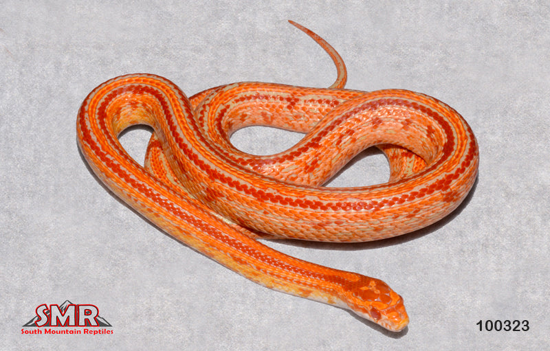 This 27" female sub-adult Cherry Amel Tessera appears to possess only one of the paired Red Factor gene copies, but her colors are still saturating more with maturity. She is currently eating frozen/thawed large fuzzy or small hopper mice. Flat-rate $39.00 overnight shipping for any U.S. zip code.