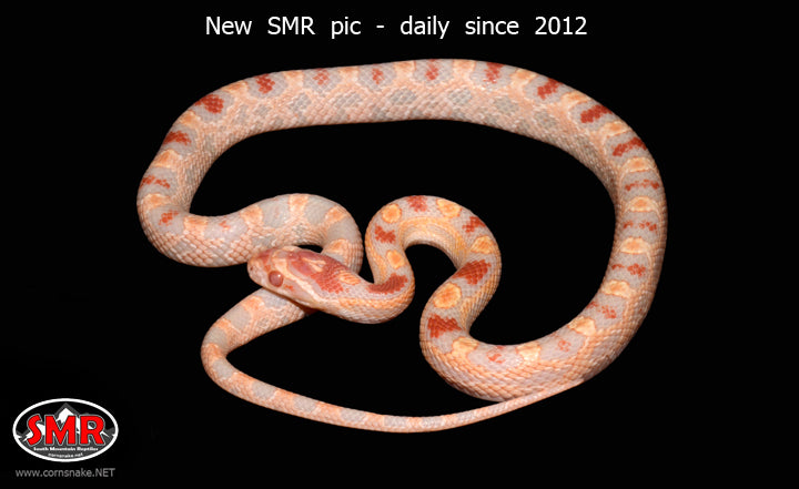 From the Scratch & Dent department, this 18" male Extreme Reverse Okeetee is currently eating frozen large pinky mice. S & D because he seems to have a snubby snout (a little blocky and shorter than most corns?). He eats and digests perfectly. $81.00 plus $39.00 flat-rate overnight domestic shipping.