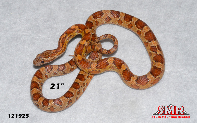 This 21" male corn snake is het for Caramel and Amel. He is currently eating large frozen/thawed pinky mice. $39 flat-rate overnight shipping for all SMR corn snakes.