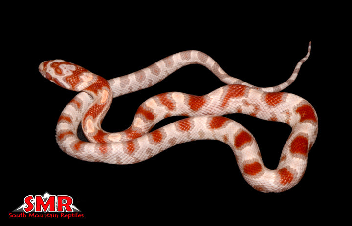 This 12" 2023 male High-white Reverse Okeetee is eating frozen/thawed pinky mice. He could be a Sunkissed mutant, but, if not, he is het for Sunkissed. Also, since one of his parents is a Scaleless Sunkissed Hypo he is het for Hypo and Scaleless. He is currently eating frozen/thawed day-old pinky mice.