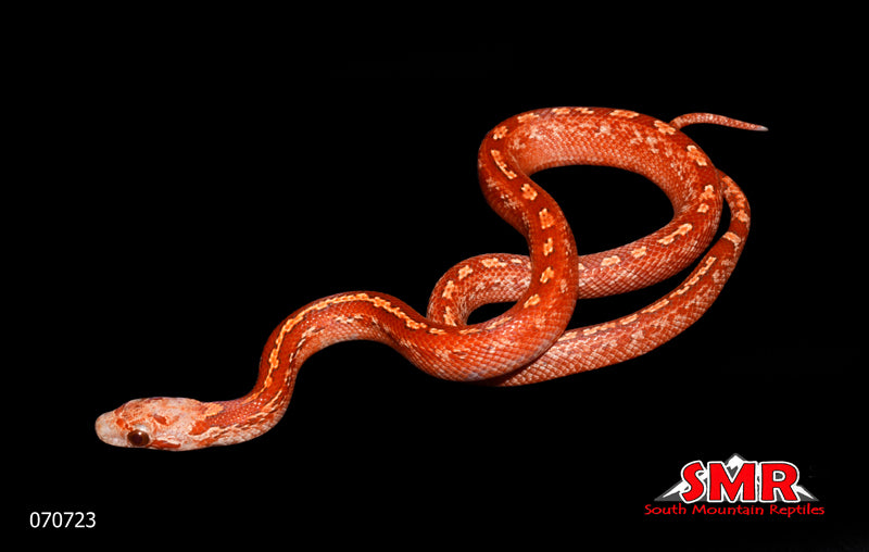 This 13" female 2023 Hypo Pied-sided Bloodred Tessera is currently eating frozen/thawed 1-day-old pinky mice.