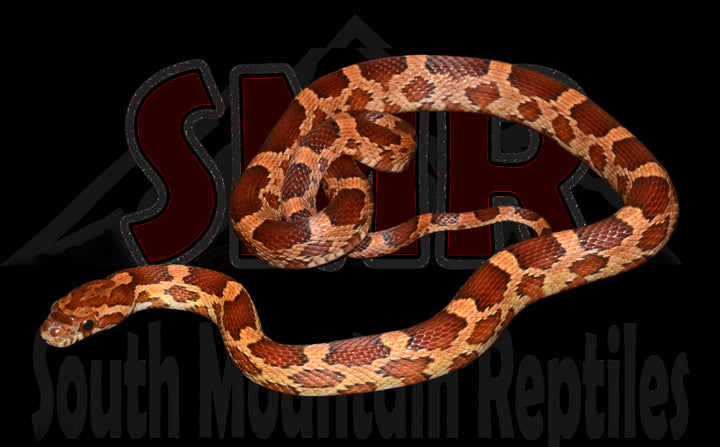 This 18" female cornsnake is 66.6% possibly het for Scaleless Sunglow Motley, since both parents are het for these mutations. She is currently eating frozen/thawed medium pinky mice. $211.00 plus $39.00 flat-rate overnight domestic shipping to any of the lower-48 U.S. zip codes.