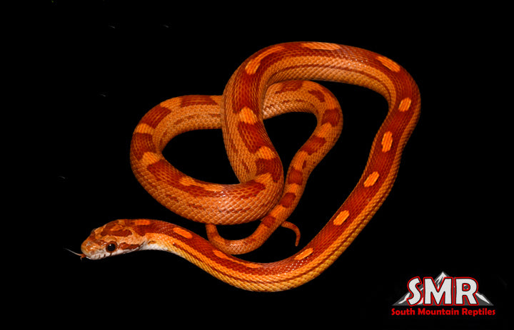 This 20" male 2020 Red Factor Motley is currently eating frozen/thawed medium-to-large pinky mice. He is 66.6% Possibly Het for Scaleless and Amel. $231.00 plus $39.00 flat-rate overnight domestic shipping to any of the lower-48 U.S. zip codes.