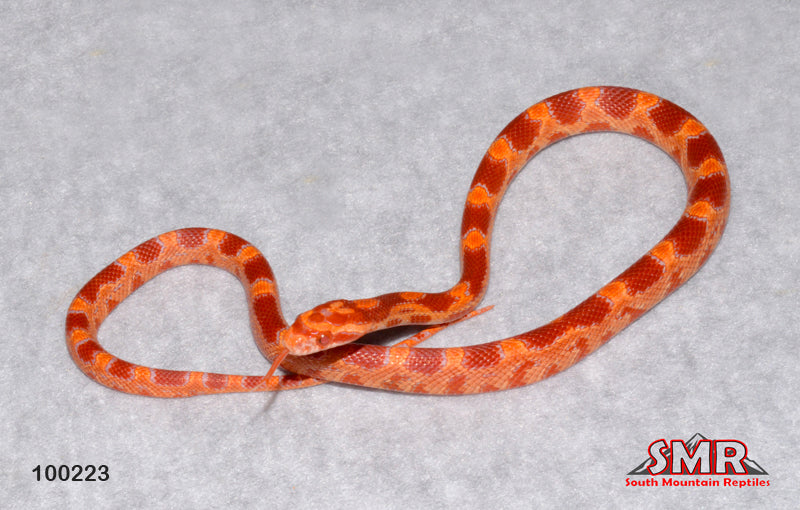 This 12" 2023 female Reverse Okeetee is also a Red Factor mutant. She is currently eating frozen/thawed small pinky mice.