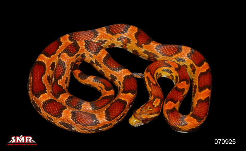 This 24" female 2024 Ultramel Okeetee is currently eating frozen/thawed large pinky mice. Her sire is a Red Factor Amel, so she is 50% possibly het for Red Factor? $39.00 flat-rate overnight domestic shipping to any of the lower-48 U.S. zip codes.