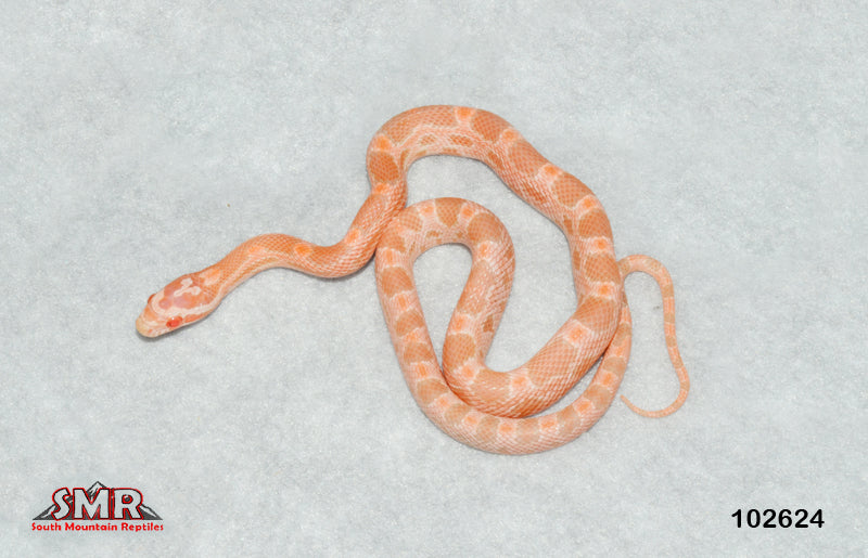 This 2023 13" male Salmon Snow is currently eating frozen/thawed small pinky mice. $39.00 flat-rate overnight shipping. snowcornsnake #southmountainreptiles #SMR #coral #salmon