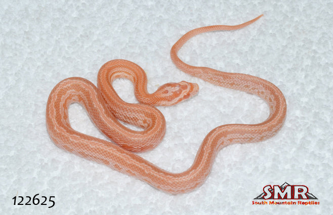 This 15" male SMR Salmon Snow Tessera is currently eating frozen/thawed small pinky mice. $39.00 overnight shipping to all U.S. zip codes between Canada and Mexico. We never use photographs of our best examples of all morphs to sell our snakes. The pic in each ad is THE snake that is for sale.