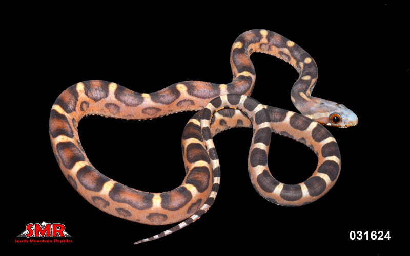 This 18" 2023 Scaleless Extreme Okeetee male is 66.6% POSSIBLY het for Terrazzo. He is currently eating frozen/thawed medium pinky mice.