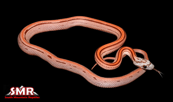 This 14" male 2020 Striped corn snake is het (or HOMO Buf, since his father is a visual Buf). He is also 50% possibly het for Hypo. A very late 2020 hatchling, he is currently eating small frozen/thawed pinky mice. $166.00 plus $39.00 flat-rate overnight domestic shipping to any of the lower-48 U.S. zip codes.