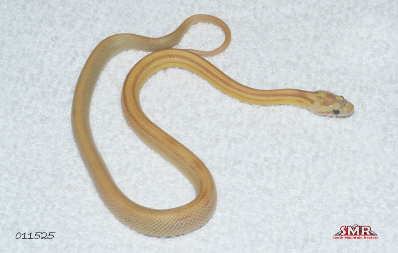 This 2024 16" male Striped Amber (aka: Striped Hypo Caramel) corn snake is currently eating frozen/thawed small pinky mice. $39.00 flat-rate domestic overnight shipping to any of the lower-48 U.S. zip codes.