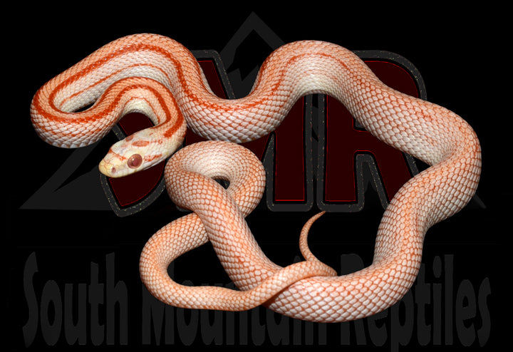 This 19" male 2021 Striped Amel is currently eating frozen/thawed medium pinky mice. Since both parents are het for Scaleless, he is 66.6% possibly het for Scaleless. $181.00 plus $39.00 flat-rate overnight domestic shipping to any of the lower-48 U.S. zip codes.