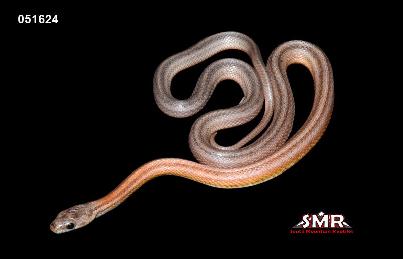 This 23" male 2023 Striped Blue ((Anery Dilute)) is currently eating frozen/thawed large pinky mice. Parents are Blue (Dilute Anery) Motley X Bloodred, so he is het for Diffused and Masque.