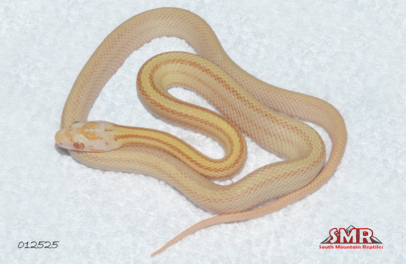 This 2024 15" female Striped Butter corn snake is currently eating frozen/thawed small pinky mice. $39.00 flat-rate domestic overnight shipping to any of the lower-48 U.S. zip codes.