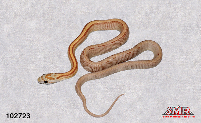 This 16" female 2022 Striped Caramel is currently eating frozen/thawed small pinky mice. She could be a Striped Amber, since two of her siblings were clearly Ambers.