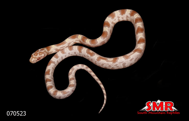This 12" male 2023 HIGH-WHITE Amel Sunkissed is from parents, Miami, het Amel and Sunkissed X Scaleless Hypo + Sunkissed, het Amel. There is no Caramel or Buf in either family tree, so the colors of this one puzzle me? So, whatever his phenotype, he is at least het for Scaleless and Hypo. Currently eating frozen/thawed 1-day-old pinky mice.