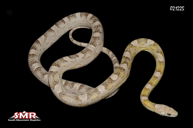 This 2023 female 34" small-adult Sunkissed GHOST cornsnake is currently eating medium frozen/thawed fuzzy mice.