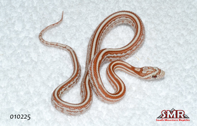 Parents of this 13" male SMR are Candy Cane Tessera X Ultramel. He is currently eating frozen/thawed small pinky mice. $39.00 overnight shipping to all U.S. zip codes between Canada and Mexico. We never use photographs of our best examples of all morphs to sell our snakes. The pic in each ad is THE snake that is for sale.
